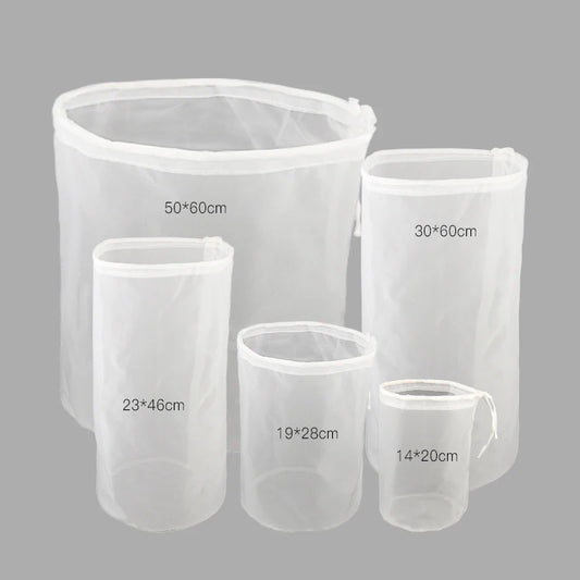 Reusable Brewing Filter Bag Drawstring Straining Cylinder Beer Wine Homebrew Filtering Fine Nylon Mesh Strainer 120 Mesh Bags