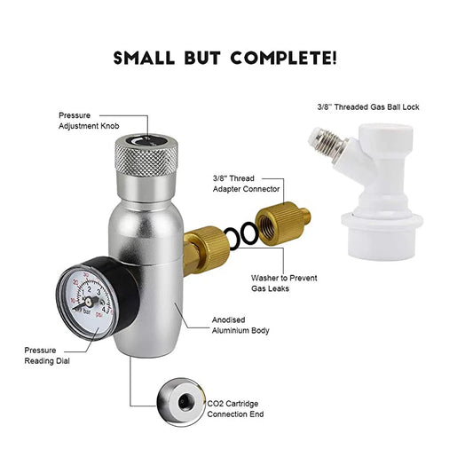 Homebrew kegging,Premium Regulated CO2 Charger with ball lock fitting,mini CO2 Regulator,3/8" thread co2 thread Mini Adjustable
